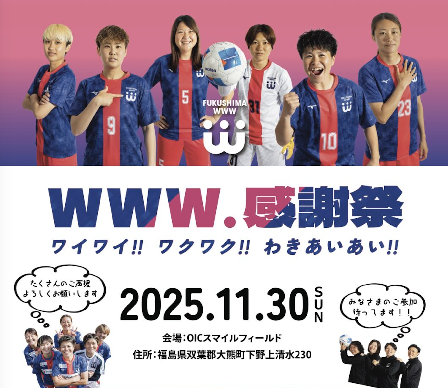 女子サッカーチーム、福島ウィーアーが、公開トレーニングマッチと大運動会を開催します。 女子サッカーチーム、福島ウィーアーが、公開トレーニングマッチと大運動会を開催します。 ▼FUKUSHIMA WWW. 公式SNSはこち […]